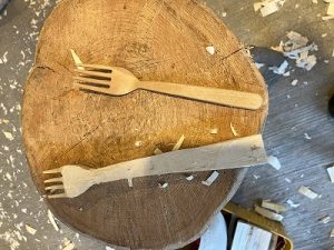 今月のワークショップではフォークづくりとスプーンづくりに取り組みました。