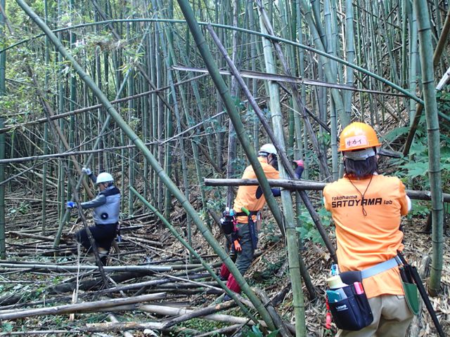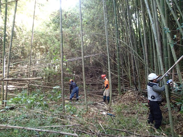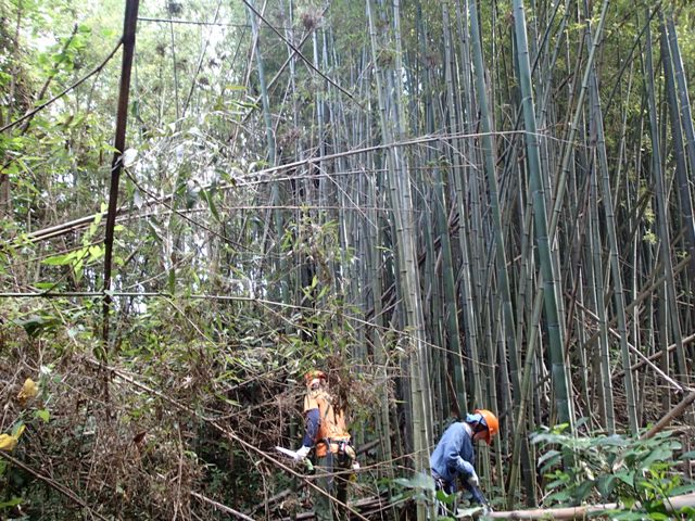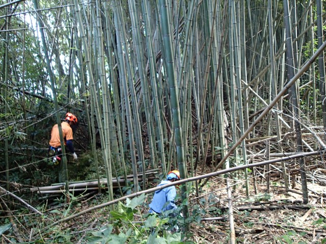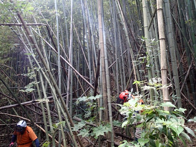 幾重にも折れ重なった竹が作業の進捗を阻みます
