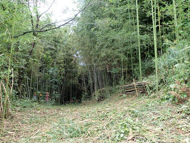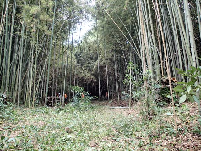 除伐した竹をきれいに積み重ね、竹林内に徐々にスペースが出来上がってきました。