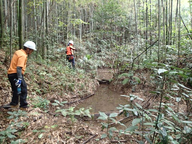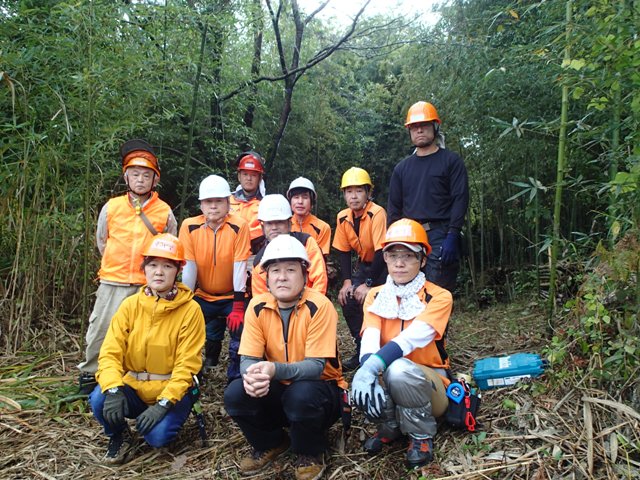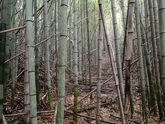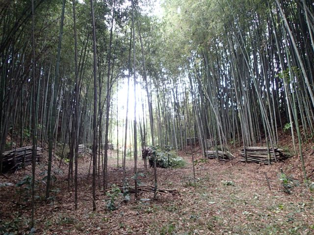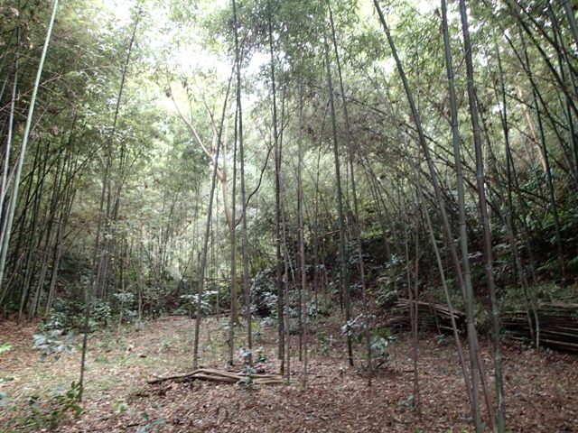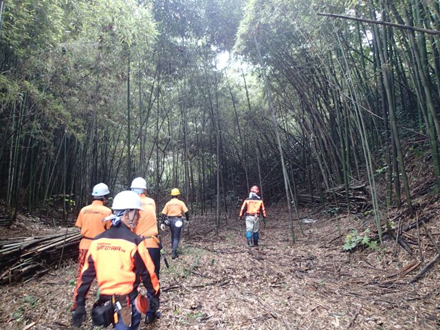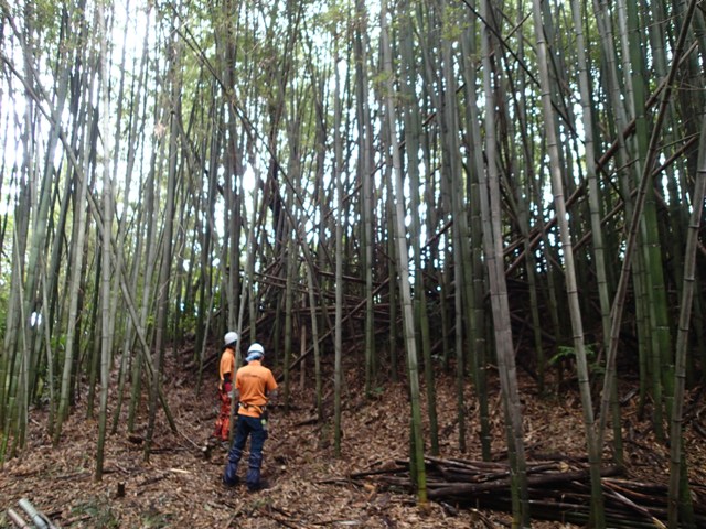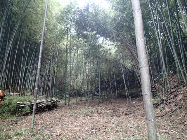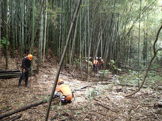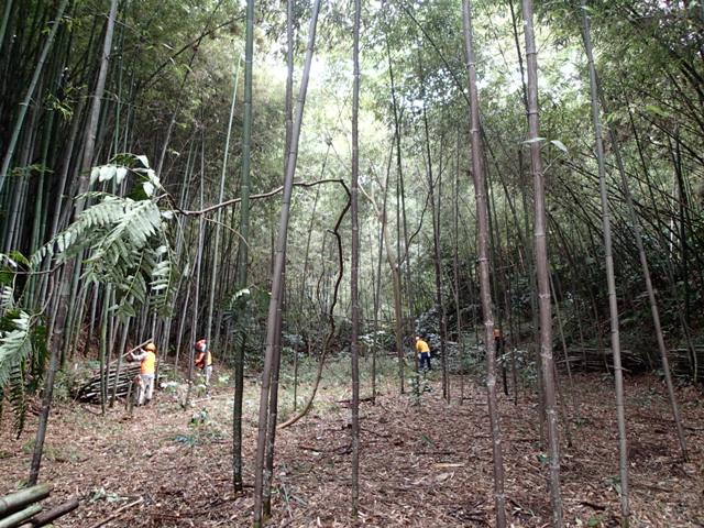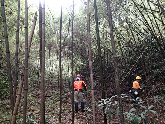 林内の南側斜面の竹を間伐中