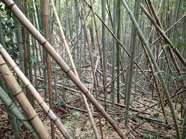 水辺エリアまで到達したので、尾根沿いに入ると荒廃は更に酷くなっていました。