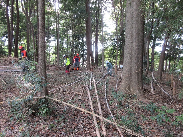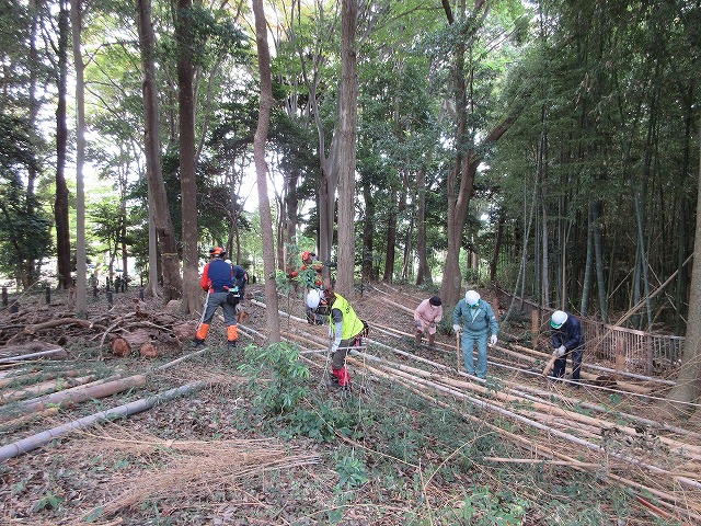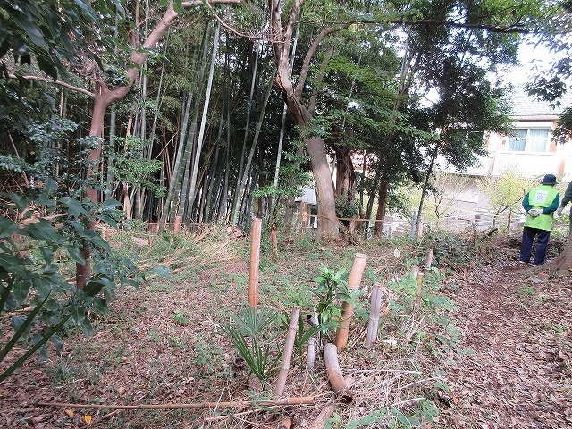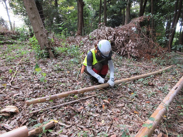 樹林地内は放置された竹で見通しが良くなく林床に陽が届きにくくなっているため整理します。