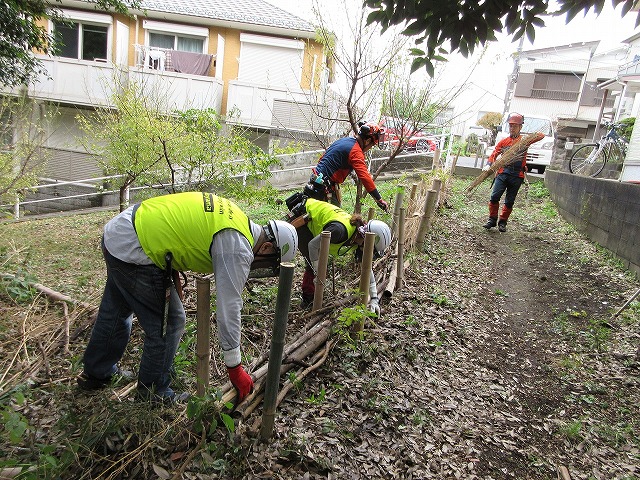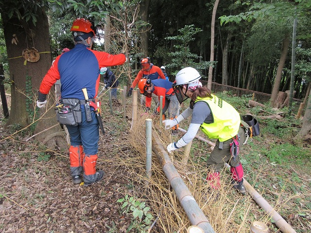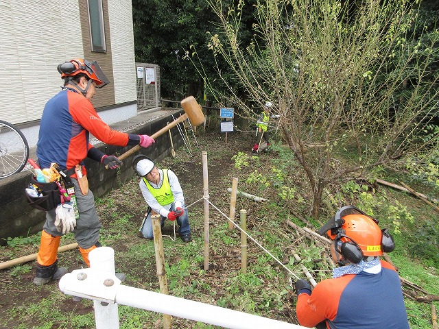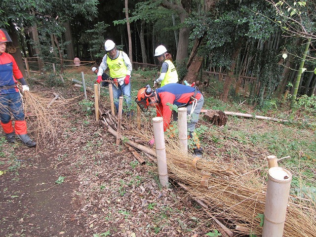 今回は、野草と昆虫に親しめる身近な森を目標に、林内に放置された間伐材を活かしながら粗朶柵(そださく)をつくり直します。