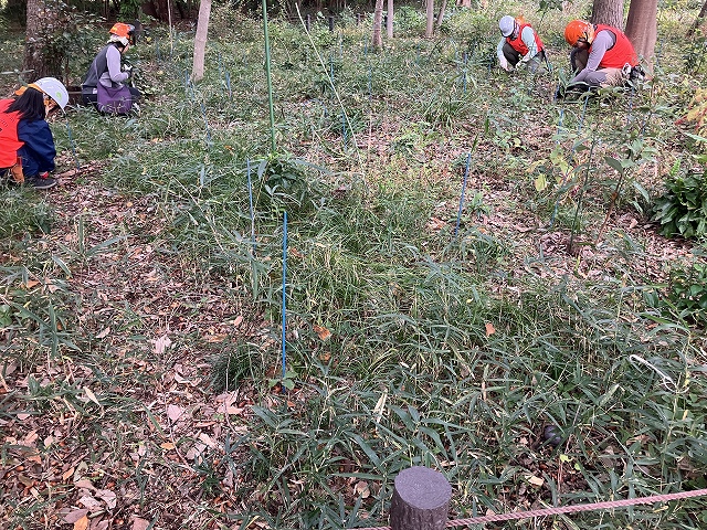 今回は、コナラ、クヌギの実生周辺の草刈りを活動団体のみなさんと一緒に行いました。
