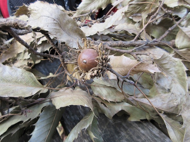 休憩時にはクヌギのドングリを観察。実を保護する殻斗を「帽子」と呼ぶ事が多いですが「パンツ」と呼ぶところもあるそうです…
