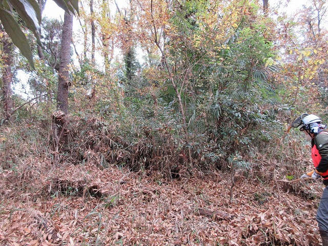 アオキ等の常緑樹、シュロも除伐しました。