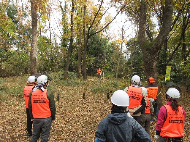 最後に、ロープを用いた安全な伐倒方法のデモンストレーション。