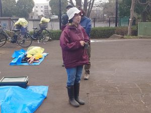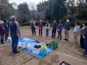 わかぎの会の伊藤さんから谷矢部池公園に説明や普段の活動について伺います
