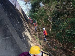 怪我の無いように入念な準備運動を行います 本日の装備は鋸、鋏、ヘルメットです