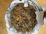 4…型に流し表面の全体的にゴマをふり、蓋に布巾をかけ蒸し器で30分蒸します。粉を合わせると、ブクブクと発泡するので、できるだけ早く蒸すのが大事!